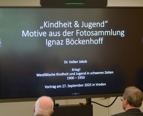 Der erste Vortrag am 17. September zum Thema „Das Dorf wird mobil – bei Arbeit, Sport und Spiel. Die technische Agrarrevolution und ihre sozialen Folgen (am Beispiel Westmünsterland)“ von Dr. Peter Exner vom Staatsarchiv Karlsruhe thematisiert den Zeitraum von 1919 bis 1969. Dabei liegt der Schwerpunkt seiner Ausführungen auf den politischen Machtverhältnissen im Dorf und dem sozialen Verhalten seiner Bewohner (Heiraten, Kinderzahl) und auf dem Fest- und Vereinsleben. Diese zentralen Bereiche dörflichen Lebens ändern sich zwar unter dem Eindruck der technischen Revolution auf dem Lande, stellen aber auch eine Folge der Individualisierung und Mobilisierung in der bundesrepublikanischen Gesellschaft dar. Dabei werden auch Fragen wie die Modernisierung bzw. der Einfluss des Nationalsozialismus sowie das Tempo und Ausmaß der Vertriebeneneingliederung behandelt.